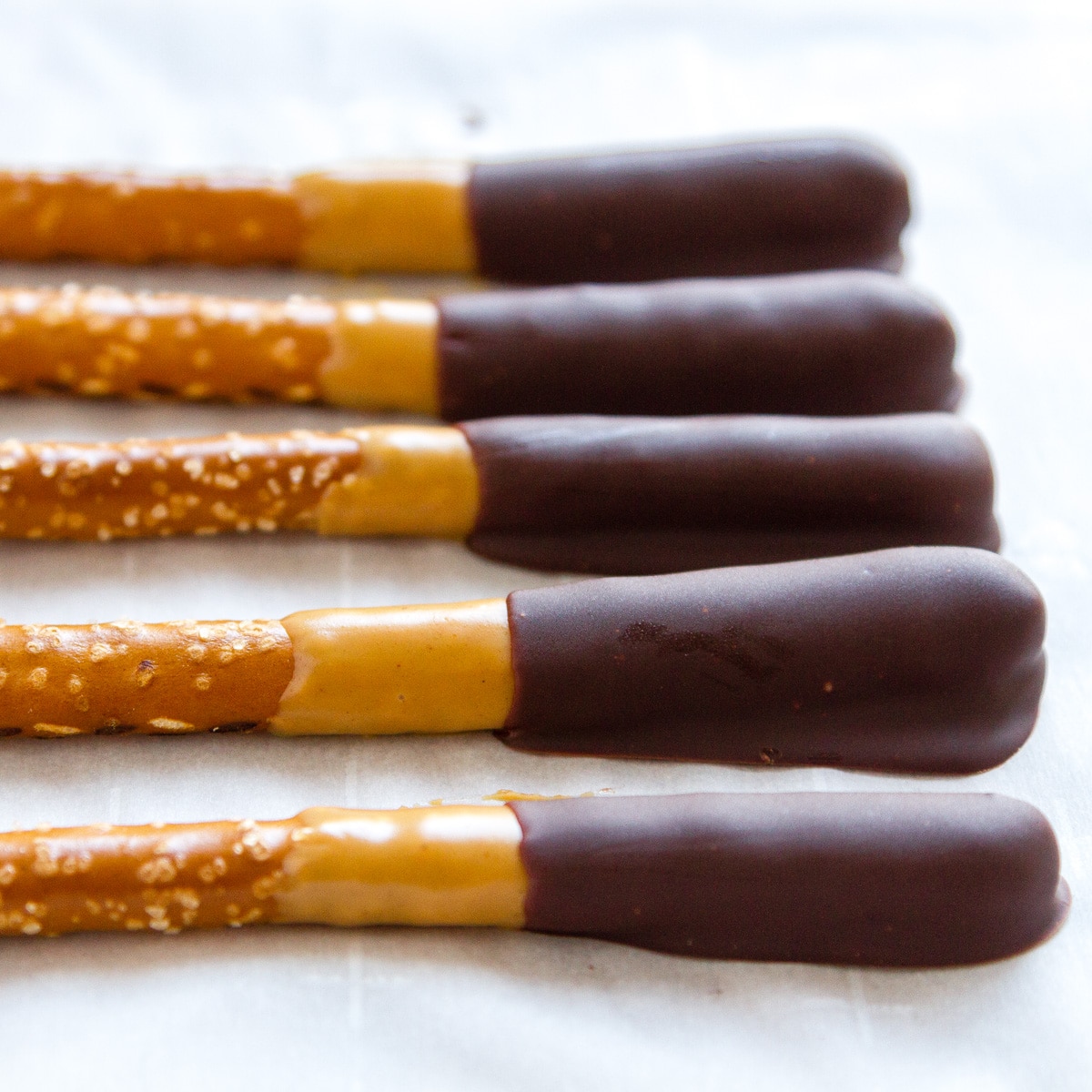 Chocolate Peanut Butter Pretzel Rods for choctoberfest 2016 and Tailgating Snacks Month are a fun dessert snack that everyone young and old will love