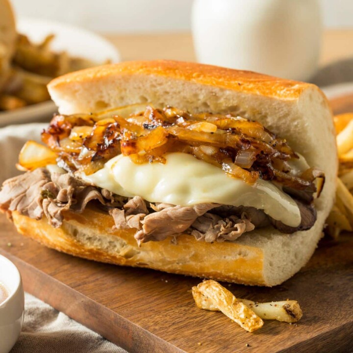 Crockpot French Dip Sandwiches are an easy dinner idea that you’ll fall in love with. Tender beef atop a toasted sandwich roll with an incredibly delicious dipping sauce makes this slow cooker recipe a winner!