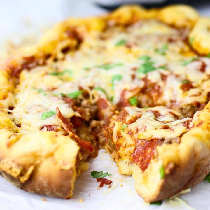You have to try this Crockpot Pizza recipe! It's a deep-dish pizza that's absolutely amazing. What could be easier than crispy pizza in your slow cooker!