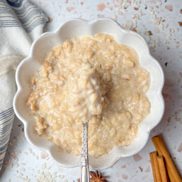 There’s a reason people have been making versions of rice pudding for centuries. It’s one of those timeless, humble, and comforting desserts that is practically impossible to mess up. Nearly every culture has its own version, and most families have a preferred way of making it. Some like it thick and puddingy, others loose and creamy. Some add cinnamon and vanilla, while others lean toward citrus zest, cardamom, or golden raisins. No matter how you make it, rice pudding turns ordinary ingredients into something deeply satisfying. This creamy rice pudding recipe is a starting point for endless variations (see more ideas down below)! I developed this recipe for two people, but it easily doubles or triples if you want to make a big batch!