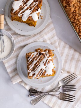 Pumpkin Coffee Cake with Streusel & Maple Cream Cheese Icing