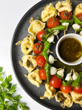 Easy Christmas Appetizer: Tortellini Caprese Skewers