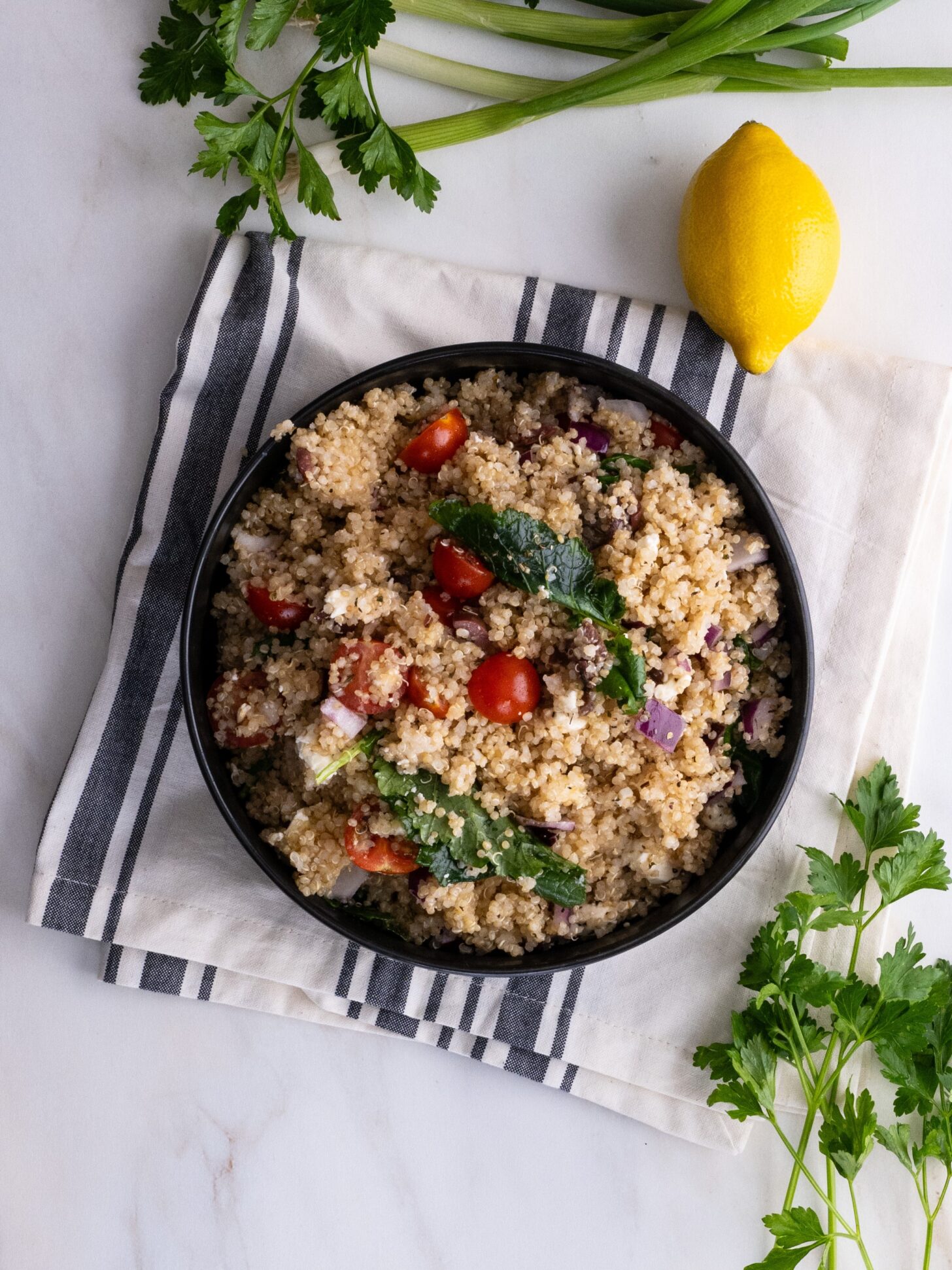 Can I make this salad in advance? You bet! In addition to the quick and easy prep and simple ingredients in this one-pot Mediterranean quinoa, we also love how perfect this recipe is for a make-ahead lunch or dinner.