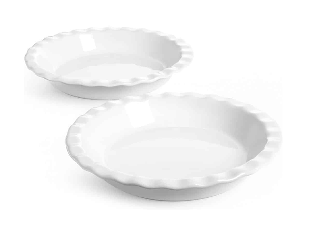 It’s also a good idea to have a few ceramic pie plates in your kitchen so you have enough dishes to hold your different flavored pies at your Thanksgiving dinner. Hello, pumpkin pie! The wavy edge makes it easy to crimp down on the pie dough for a lovely crust. These pie plates are freezer, oven, and microwave-safe.