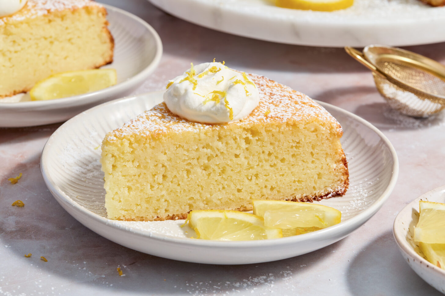 Cool and Serve: Let the cake cool in the pan for 10 minutes, then release the sides of the springform pan. Transfer the cake to a wire rack to cool completely. Dust with powdered sugar before serving, and garnish with lemon slices or whipped cream if desired.