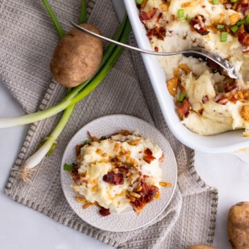 A warm, bubbly, cheesy casserole is just what we all need for colder nights ahead. This mashed potato casserole is the pinnacle of comfort food. It's rich, creamy, cheesy, and topped with crispy bacon and fried onions. So, if mashed potatoes are already a favorite in your house, this baked version takes them to the next level. With its fluffy interior, golden top, and smoky bacon flavor, it’s the kind of recipe that makes everyone ask for seconds. It’s also incredibly convenient and easy to make ahead.