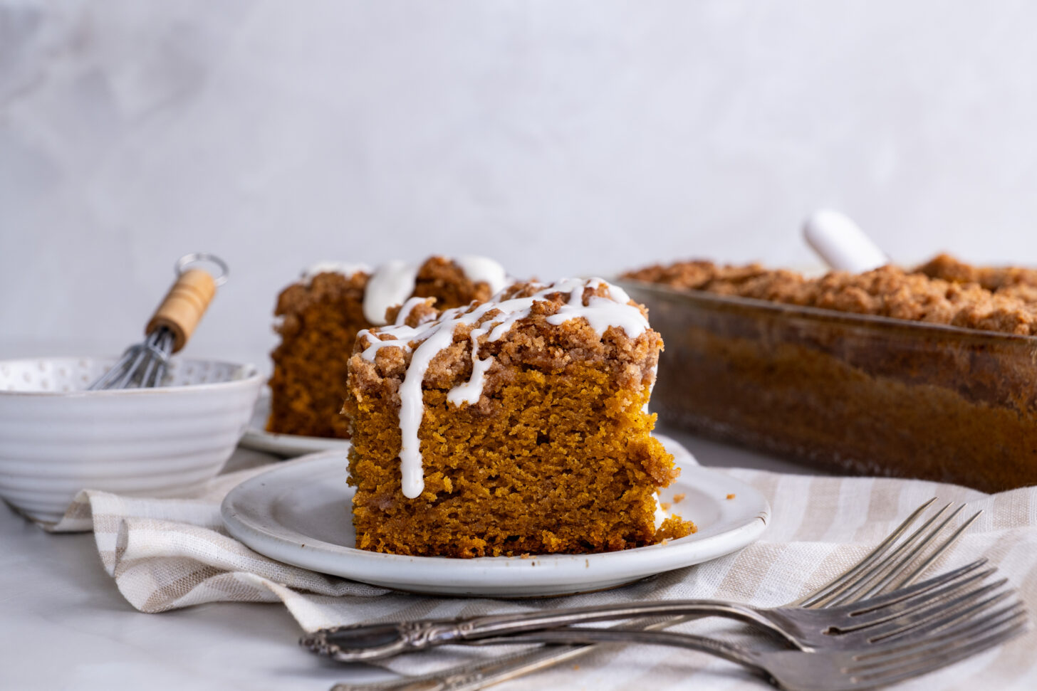 - Make it mini by baking in muffin tins for portable pumpkin coffee cake bites.